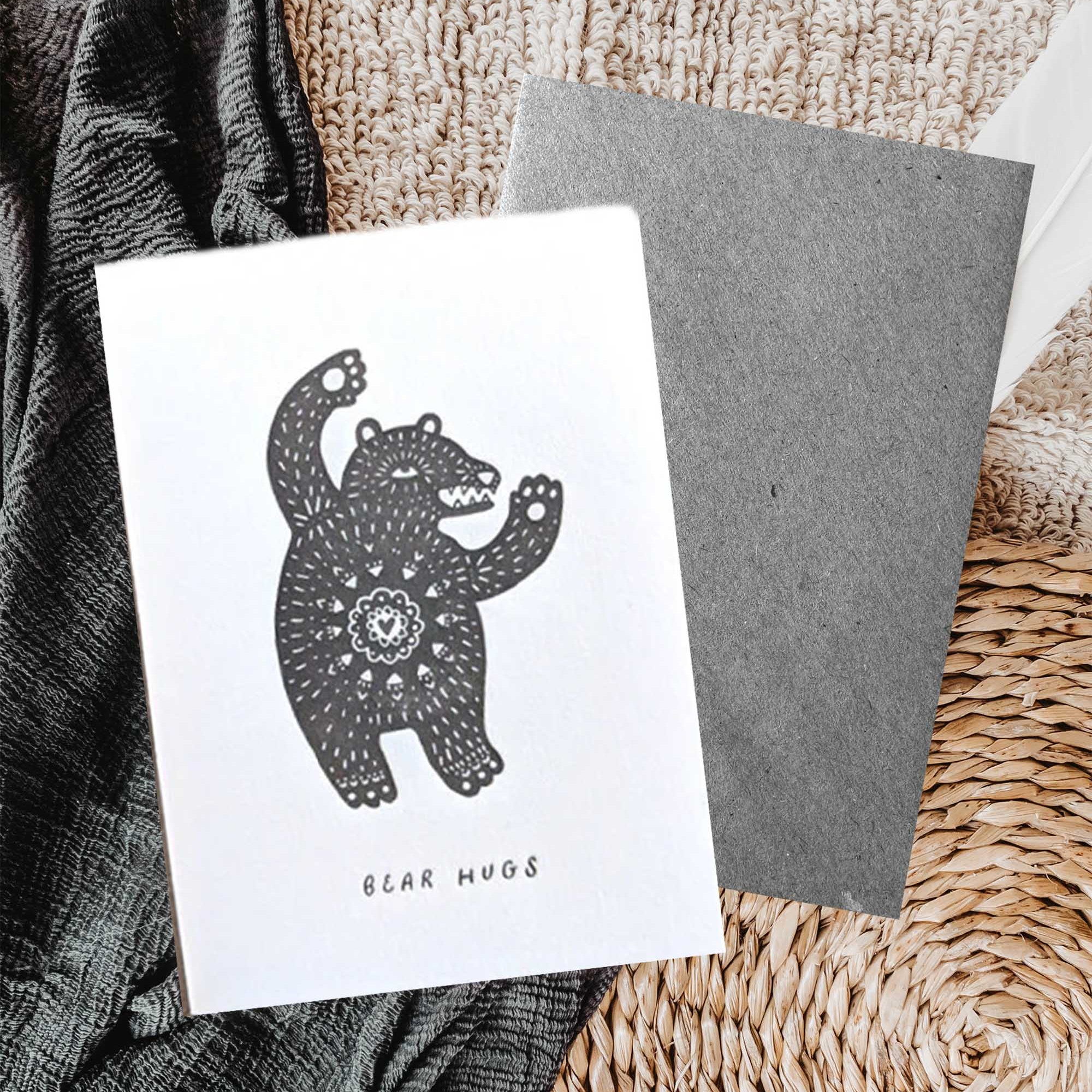 Sometimes, a big bear hug says it all. Send a little warmth and love with this Bear Hugs Greeting Card, featuring a hand-drawn letterpress design on sustainably sourced card. Perfect for letting someone know you're thinking of them—no matter the distance.
